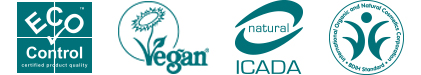 Met trots zijn onze producten gecertificeerd natuurlijk (BDIH, Eco-control & ICADA) en geregistreerd door The Vegan Society.